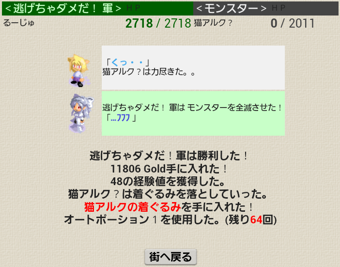 上級:19/87(ガルフォード、モリガン、萬三九六、ミト、ミト、プラム、リッド、主人公(DQ5)、プラム、ジナ、ブルカノ、鈴希、毛利元就、覚醒ヒロ、壬生月斬紅郎、ラミントン、娘(DQ5)、ヴァン、猫アルク)